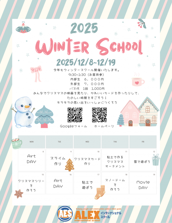 ※レッスンは、ウィンタースクール期間も通常通り開催していますので、午前中の生徒様は別途お申込みの必要はございません。